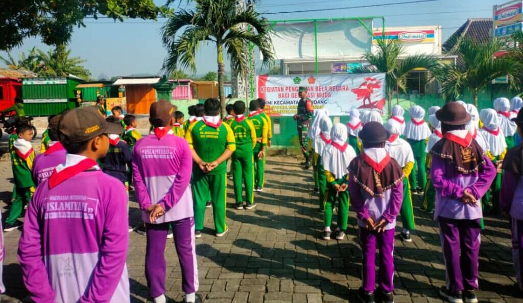 BOJONEGORO – Siswa-siswi dari dua Madrasah Ibtidaiyah (MI) di Kecamatan Gondang mengikuti kegiatan penguatan wawasan bela negara yang diselenggarakan di Posramil Gondang pada Rabu, 31 Mei 2023. Acara ini bertujuan menanamkan jiwa nasionalisme dan patriotisme sejak dini kepada generasi muda.Dua madrasah yang berpartisipasi adalah MI Miftahul Huda Senganten dan MI Islamiyah Pajeng.
